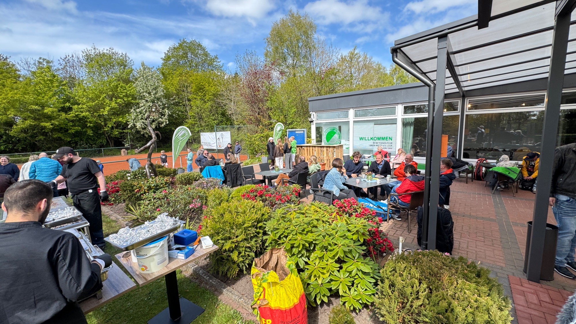 Unser Clubhaus mit eigener Gastronomie und einer großen Sonnenterrasse lädt zum Entspannen und Verweilen nach dem Spiel ein.