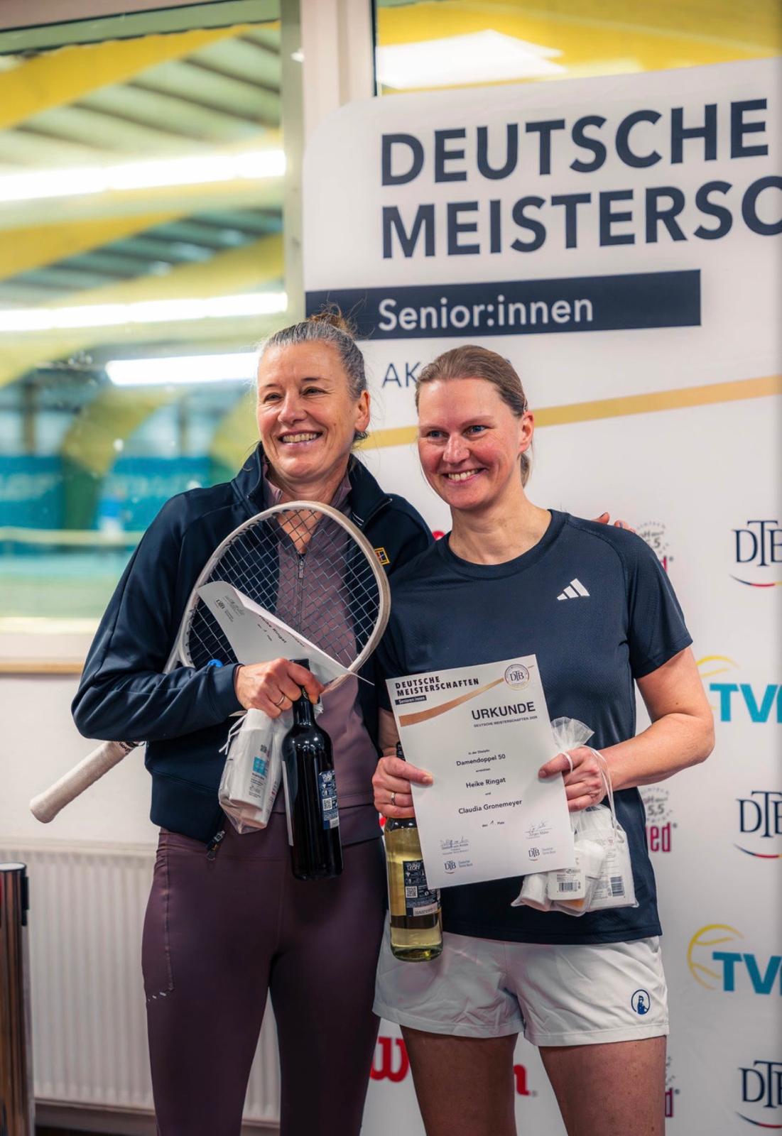 Die deutschen Hallen-Tennis-Meisterschaften für Seniorinnen und Senioren fanden vom 18. bis zum 22. Februar 2026 in Essen statt. Bei diesen Meisterschaften holt sich Heike Ringat mit ihrer Doppelpartnerin Claudia Gronemeyer (TV Höxter) den Titel in der Altersklasse Damen50. Im Einzel verpasste Heike den Titel knapp und wird Vizemeisterin. Herzlichen Glückwunsch zu diesem tollen Erfolg!